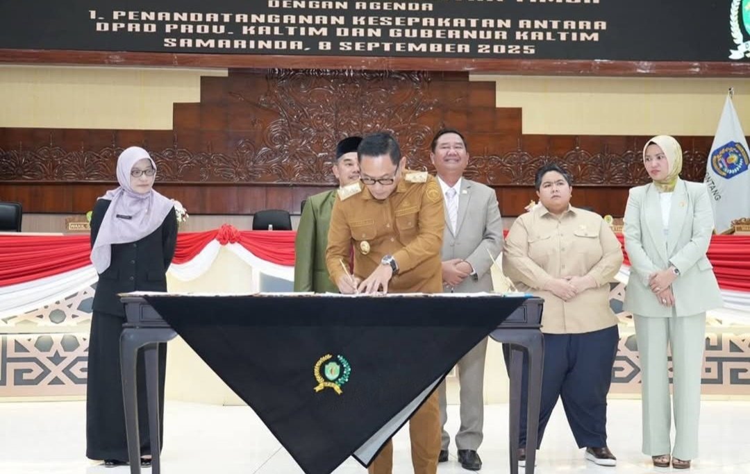 Kesepakatan itu ditandai dengan penandatanganan oleh Wakil Gubernur Kaltim, Seno Aji, Sekda Kaltim Sri Wahyuni, bersama Ketua DPRD Kaltim Hasanuddin Mas’ud dan jajaran pimpinan dewan dalam rapat paripurna ke-34 DPRD Kaltim, yang digelar pada Senin (8/9/2025.